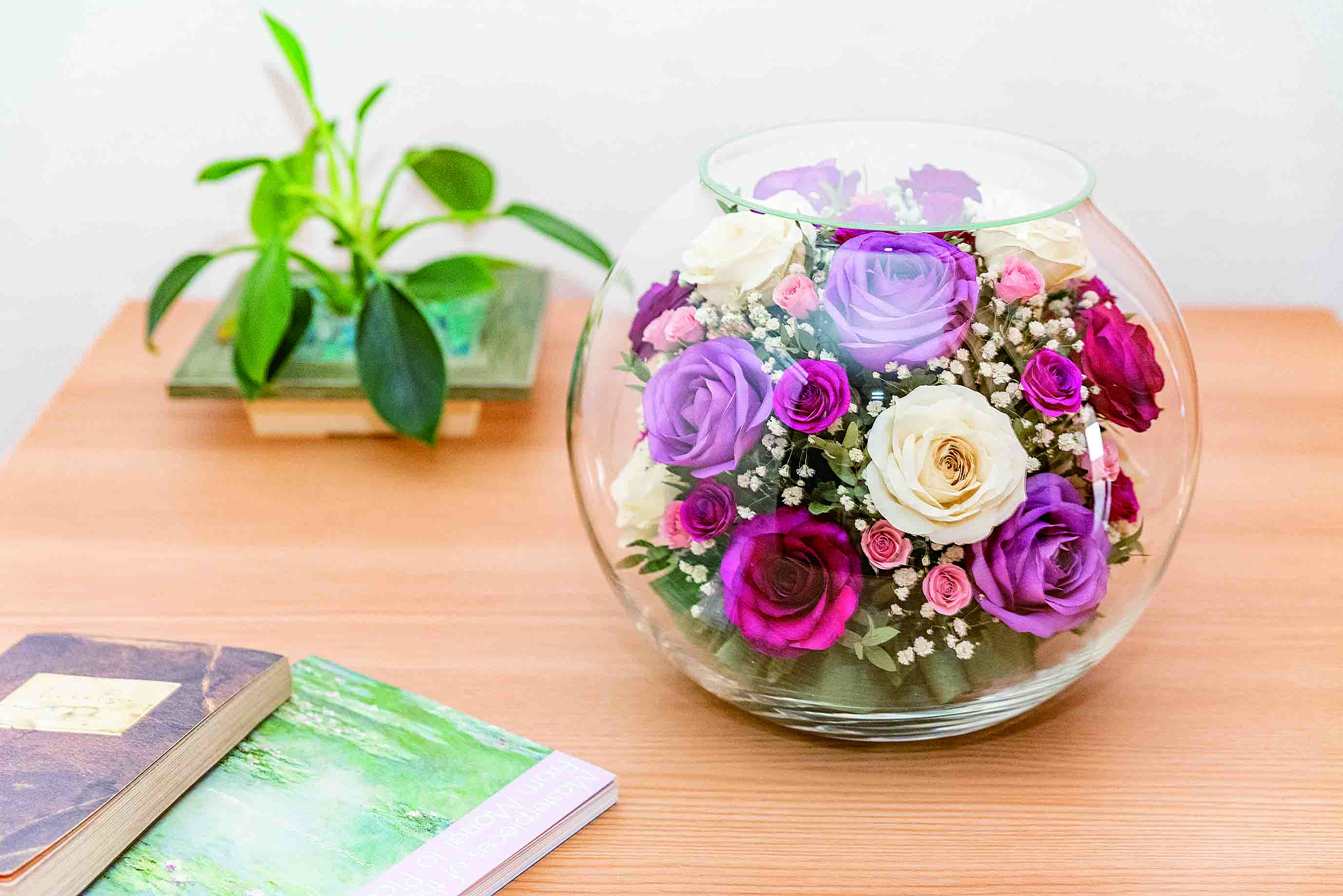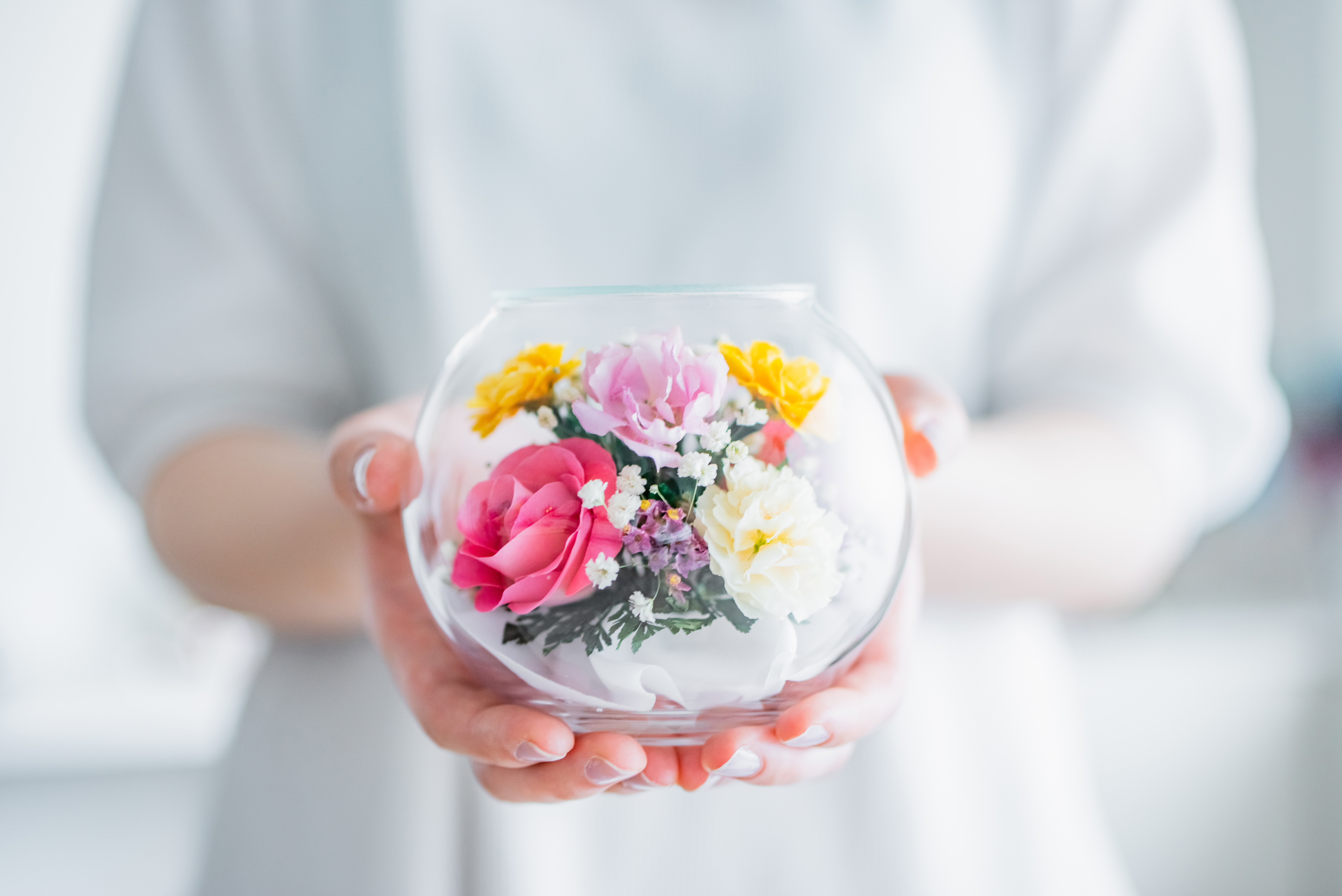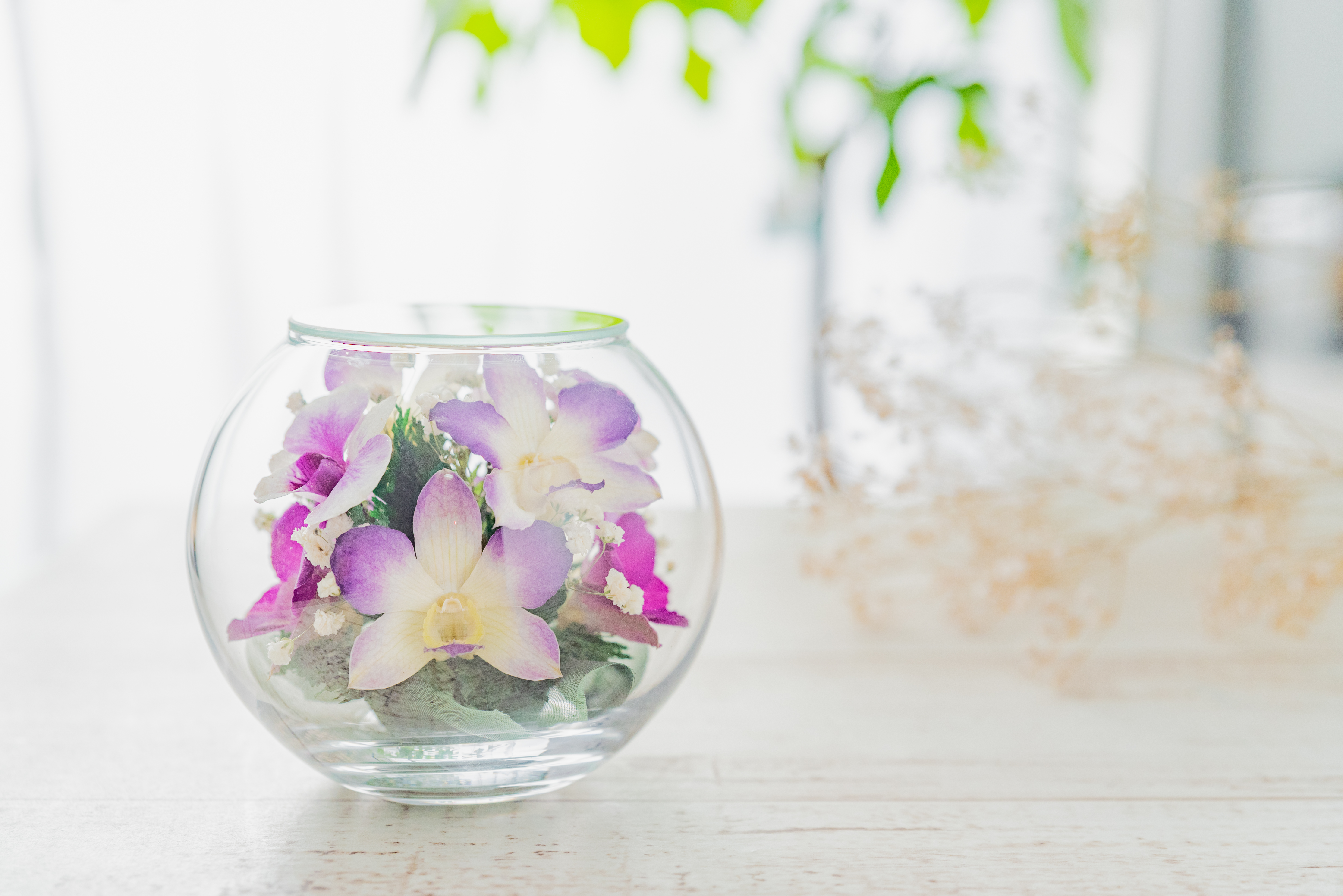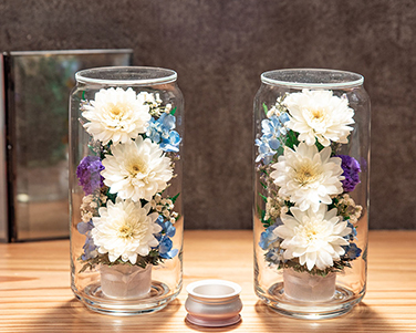 グラスの透明感とお花美しさの相性は抜群で、多くの方にご愛顧いただいている人気の商品です。